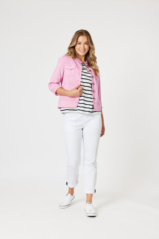 Soft Pink Plain Button Up Shirt with Rib Panels
