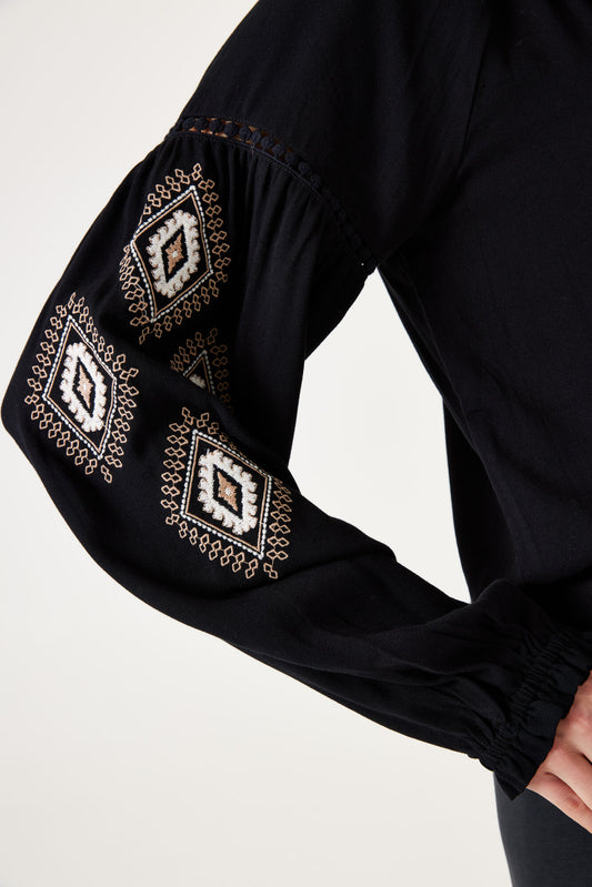 Black Blouse with Print