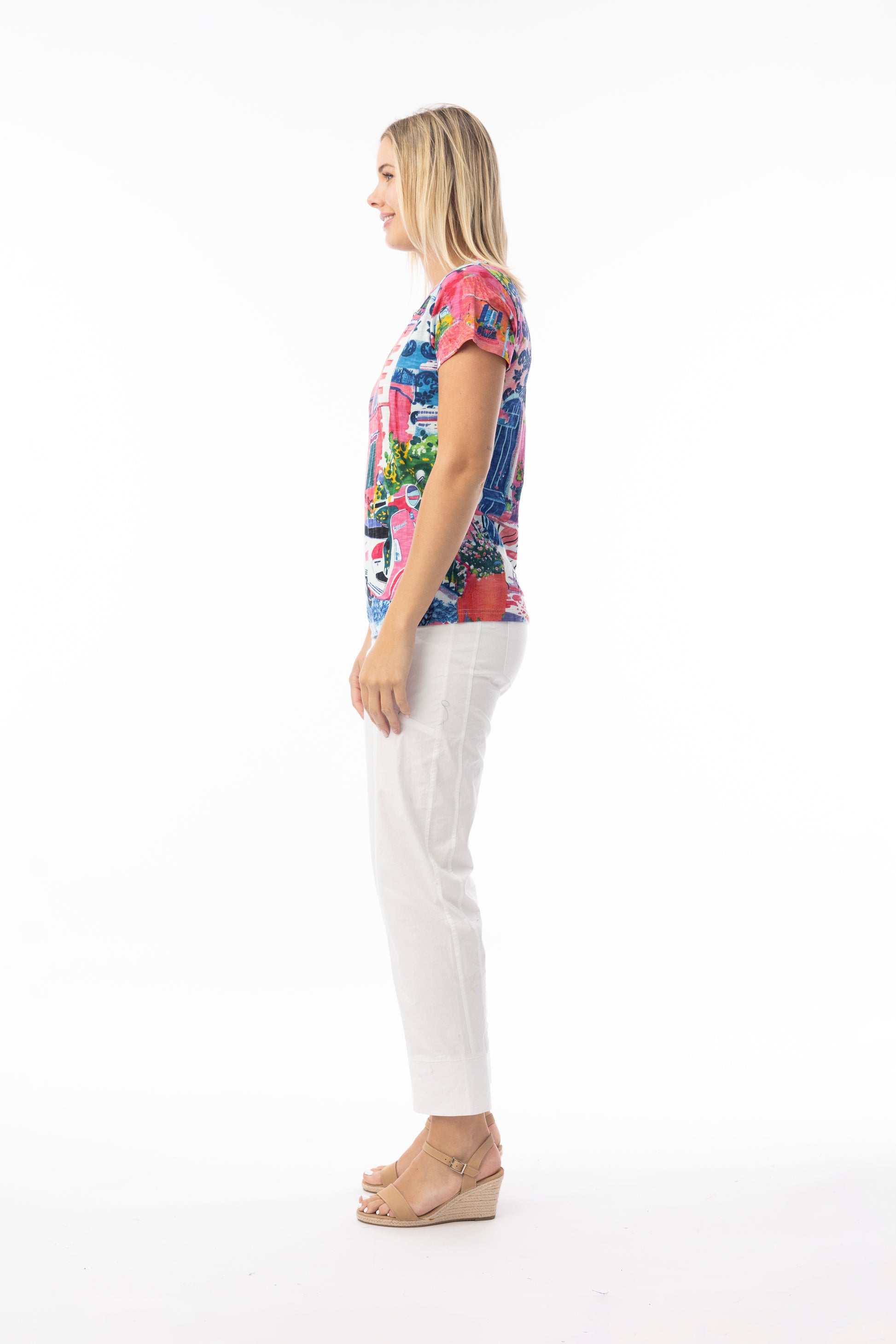 Brighten your everyday wardrobe with our contemporary crew t-shirt. Crafted from 100% organic cotton, this t-shirt features a comfortable crew neck, bold colours, and beautiful prints. This t-shirt is perfect for elevating any basic outfit this summer!