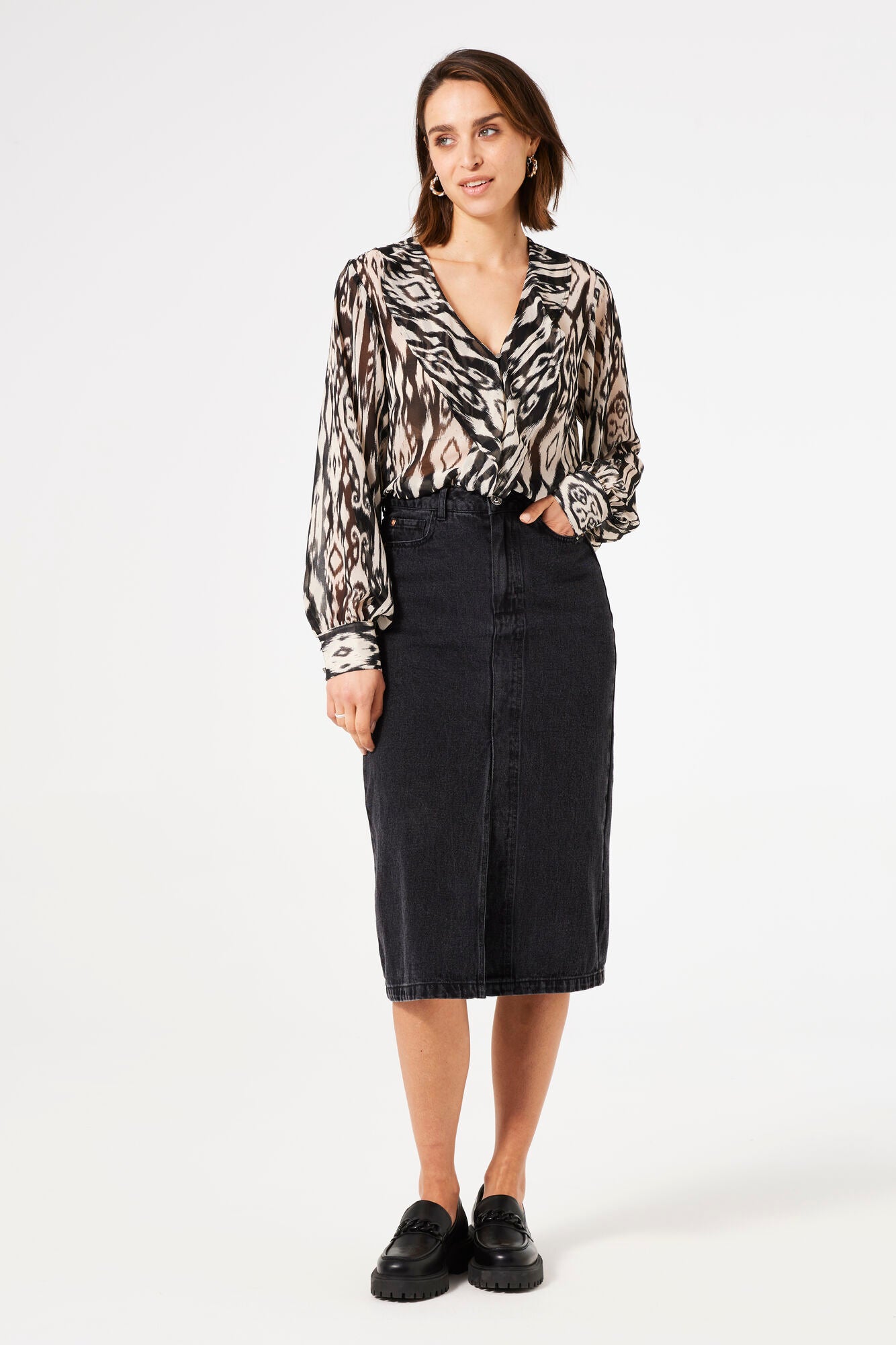 Blouse with allover print. Ideal for a trendy look. This blouse has long sleeves, a V-neck, and a regular fit.