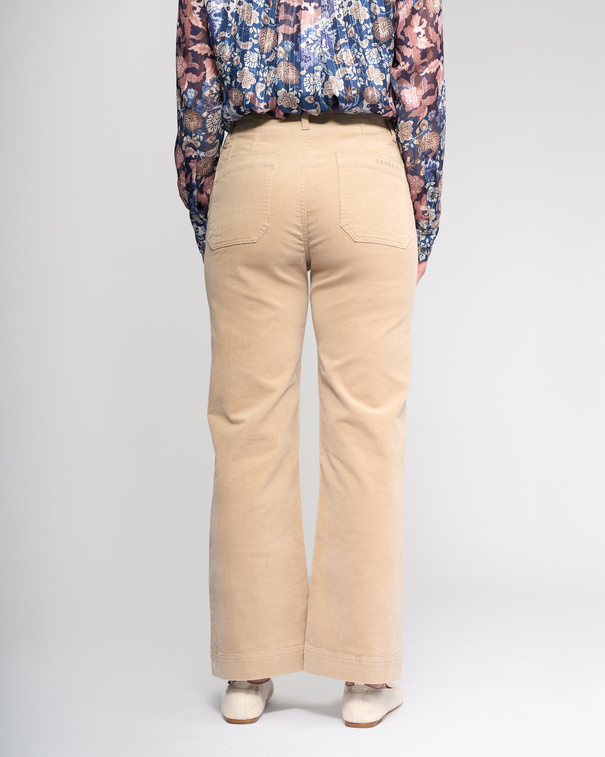 Wide-leg ankle-grazer pant in soft corduroy fabric, designed in our Oat shade — a great versatile colour. Featuring a zip fly and metal ‘V’ logo jean button, this style offers a comfortable, flattering fit with statement patch pocket detailing.