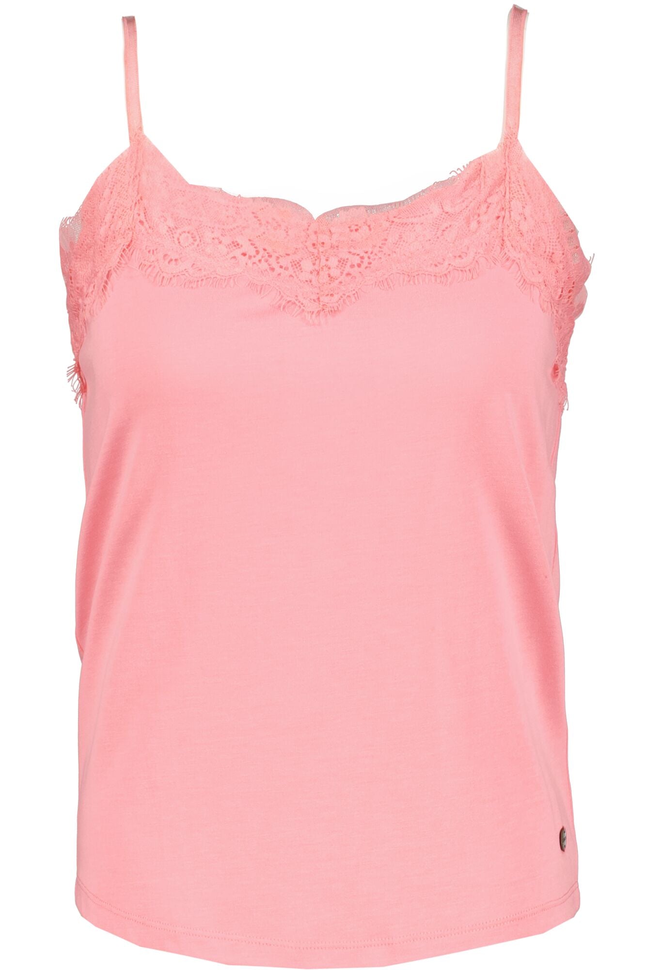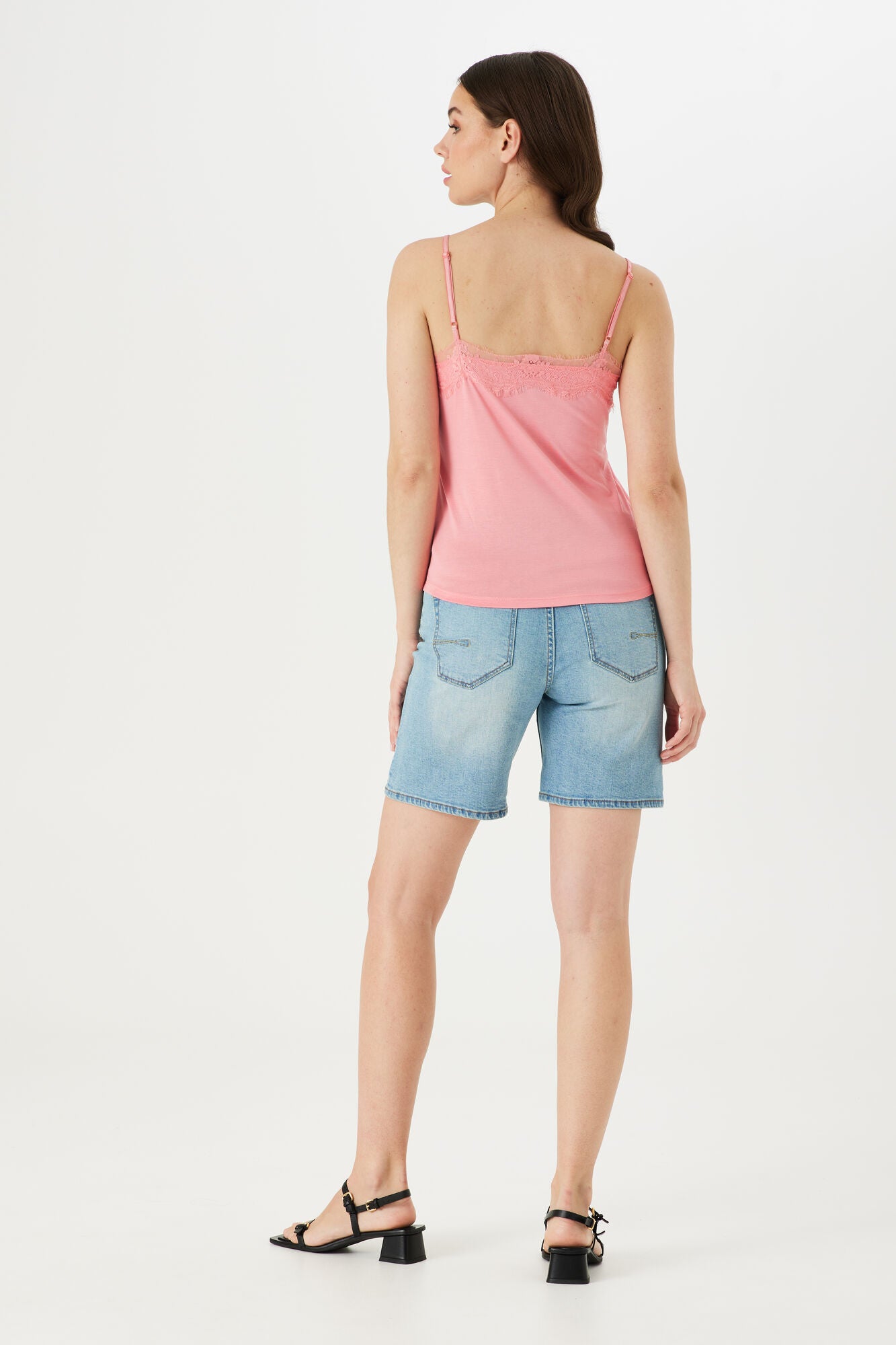 Top with lace trim. This top is a nice basic with a trendy touch. The top has a regular fit and is made of 70% modal and 30% polyester. Modal has the luxurious appearance of silk and breathes well.