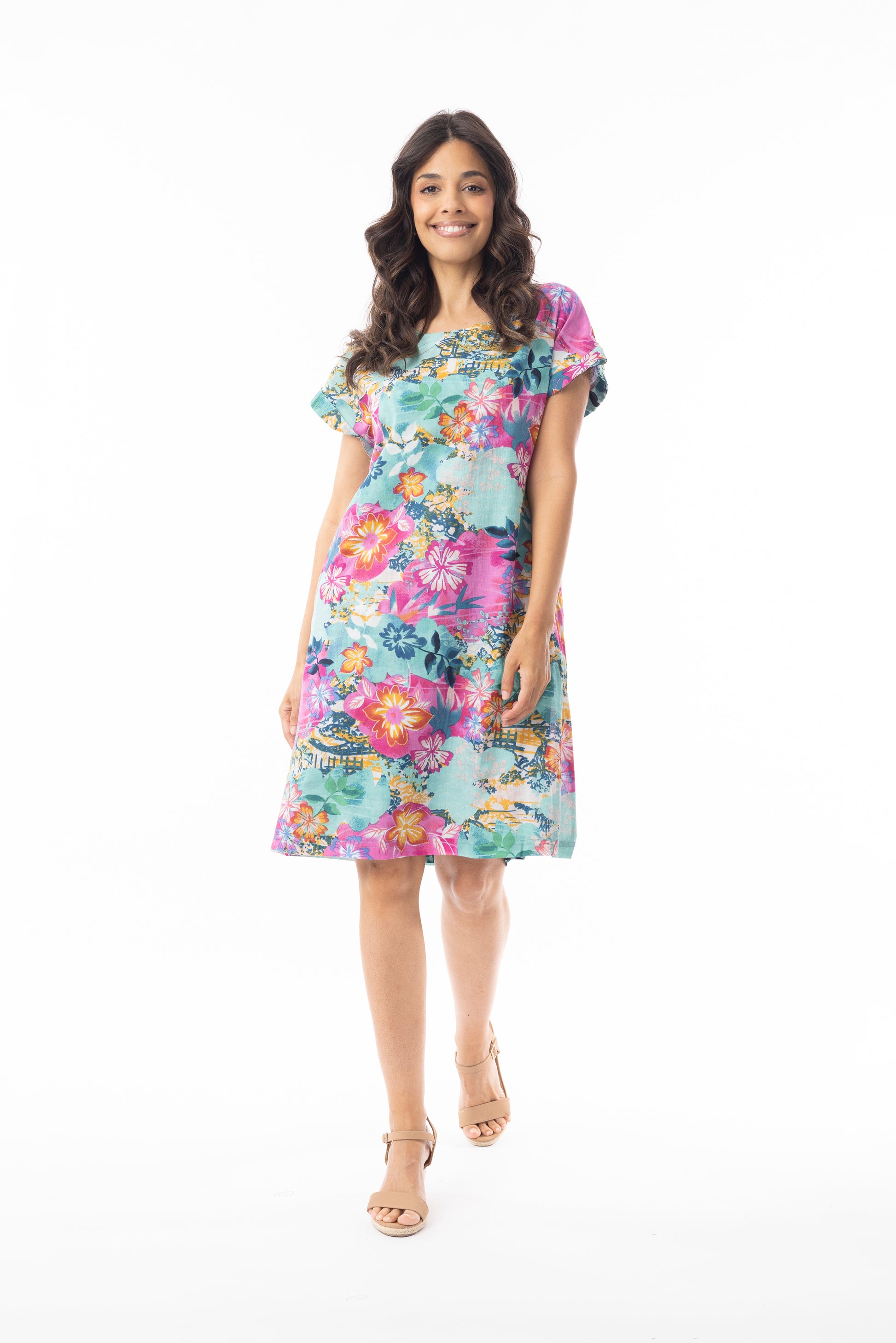 Step into the sunshine with our Selaron shift dress! Featuring a comfortable crew neckline, cap sleeves, and a relaxed silhouette, this dress comes in vibrant colours and lively prints, ideal for beach outings or casual summer days. Embrace effortless style and gorgeous prints with this stunning piece!