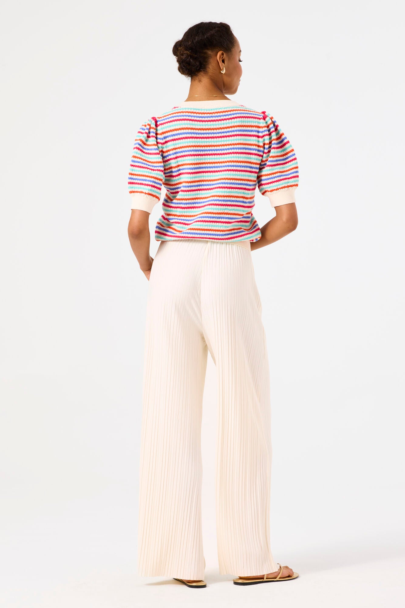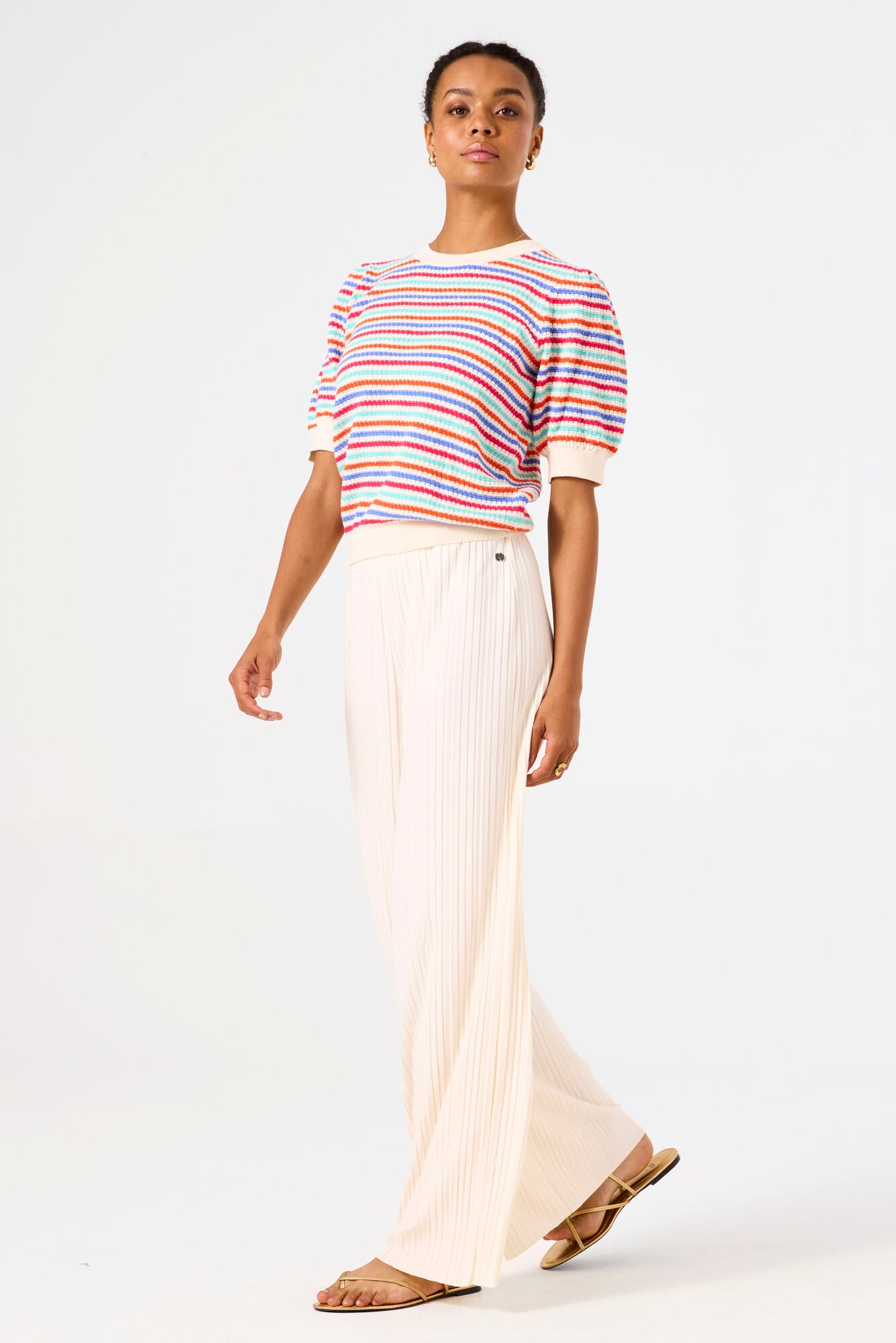 Add a pop of fun to your wardrobe with this playful striped sweater! Featuring a cozy round neck and easygoing short sleeves, it’s perfect for layering or wear solo. The cheerful stripes bring a fresh, vibrant vibe to any look, making it your go-to for casual comfort with a twist.