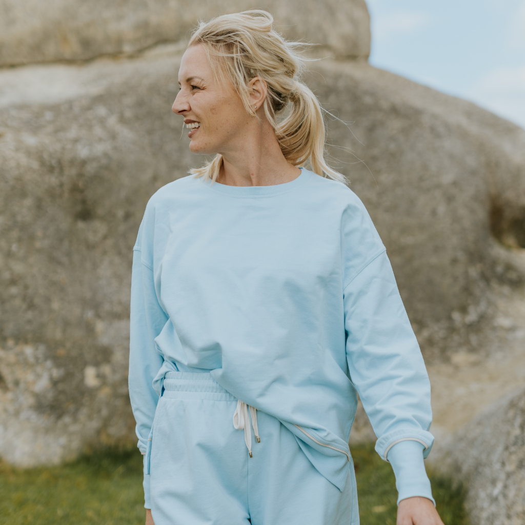 Effortlessly chic and versatile, this luxe French Terry crew neck sweater is the perfect wardrobe addition for transitional weather. Crafted in a lightweight, breathable fabric ideal for spring days and cooler summer evenings, it offers both comfort and style. The rib-knit texture adds subtle dimension, while the split hem detail enhances the relaxed fit. Contrast piping around the hem and sleeve cuffs elevates the design, giving it a refined, sporty touch. Finished with a pale gold metal "M" at the back neck for a signature detail, this sweater is your go-to for easy, everyday elegance. Pair it with your favourite jeans for an effortless, luxe look.