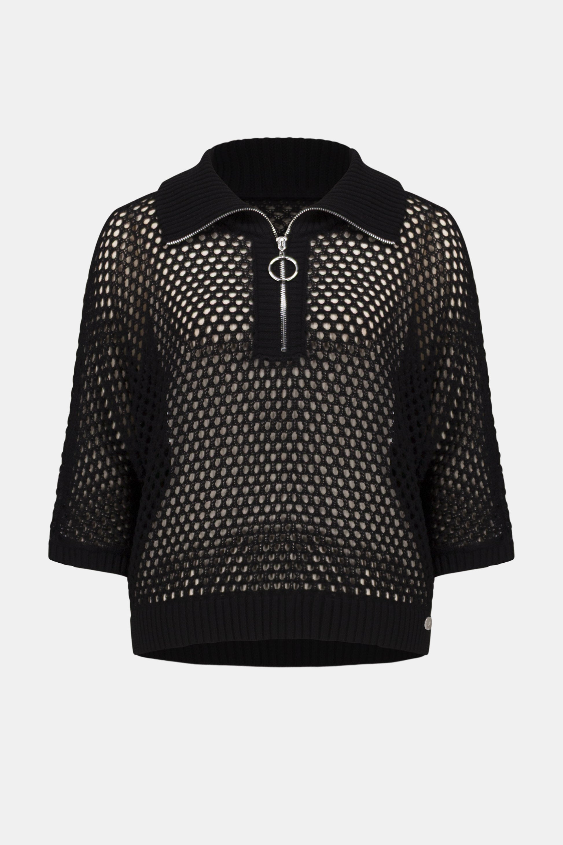 Leisurewear gets a modern lift in this open stitch sweater. Designed in a boxy silhouette with a zip-up ribbed neckline and relaxed dolman sleeves for an easy, effortless vibe.
